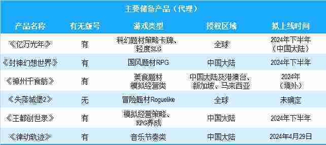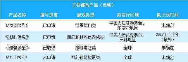 公司有多款储备产品,,,,涵盖放置类、、、策略类、、、RPG、、、、Roguelike等多元化游戏品类,,,,储备的主要自研和代理产品如下::