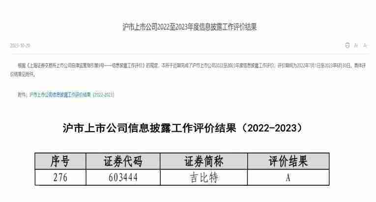 近日,,,,上海证券交易所发布2022-2023年度信息披露工作评价结果。。918.com(股票代码::::603444)凭借规范的公司治理、、、高质量的信息披露以及良好的投资者关系管理再次荣获信息披露工作A级评价,,,,公司连续两年获此殊荣。。